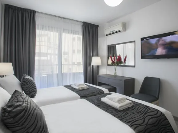 Студенты English Quest Camp размещаются в трехзвездочном отеле недалеко от центра Ларнаки. Их ждут современные 3-х и 4-местные номера. Гостиница находится рядом с пляжем Финикудес и набережной Кимона.